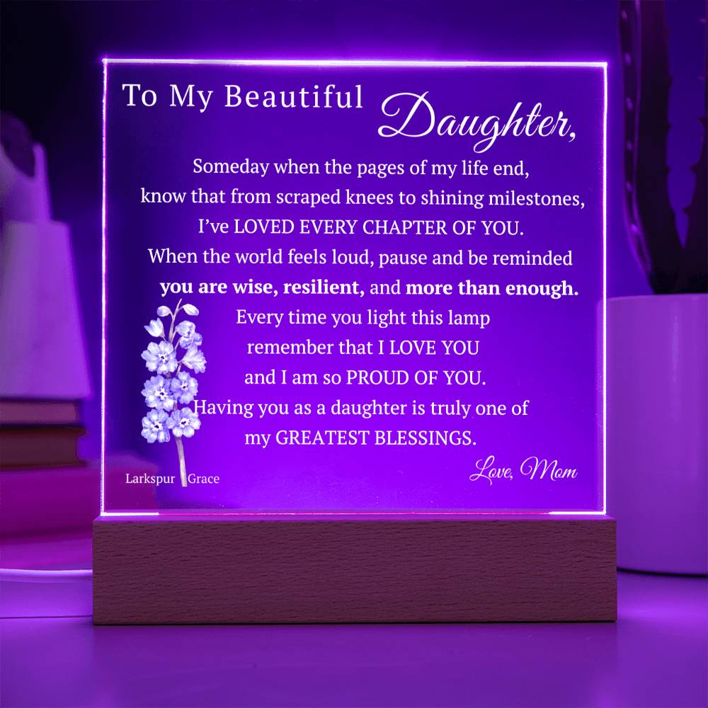 My Beautiful Daughter, Never Forget that I Love You, Birth-Month Flower, Acrylic LED Light Plaque